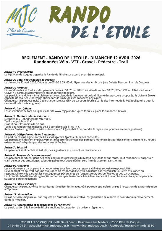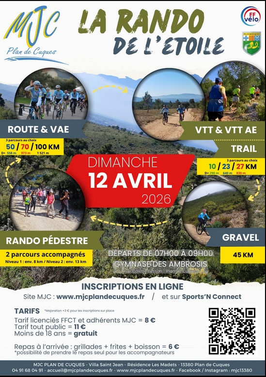 DIMANCHE 12 AVRIL : Rando de l’Etoile, MJC Plan de Cuques
