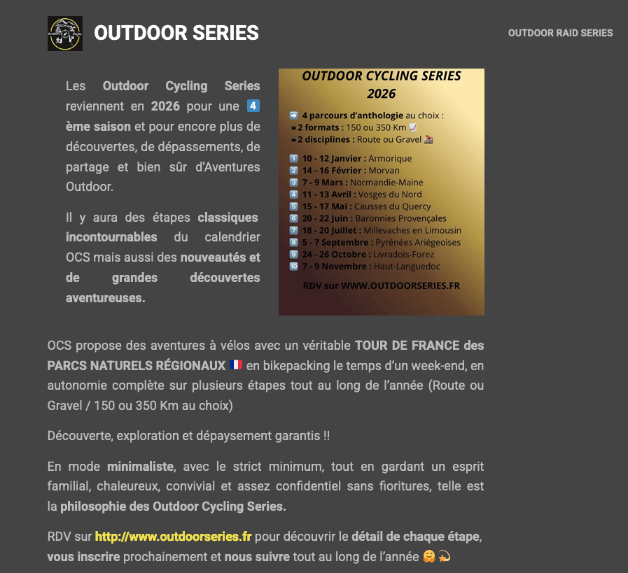 Pour les amateurs de « bikepacking ». En Français « randonnée-camping cycliste » Ça fait déjà plus rando, ( en autonomie complète)